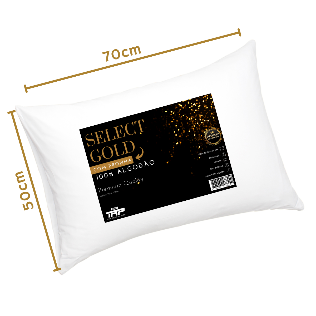 02 Travesseiros Select Gold 50x70cm com Zíper Lateral.