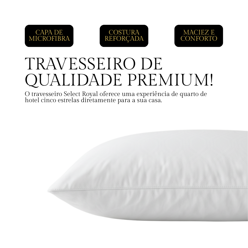 O Travesseiro Select Royal é a escolha perfeita para quem busca a experiência de dormir como em um hotel 5 estrelas. Desenvolvido pela TRP Imports, combina conforto excepcional, suporte ideal e acabamento impecável, proporcionando noites de sono luxuosas.