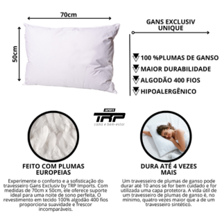 | Composição | 100% Plumas de Ganso Europeu Selecionadas |