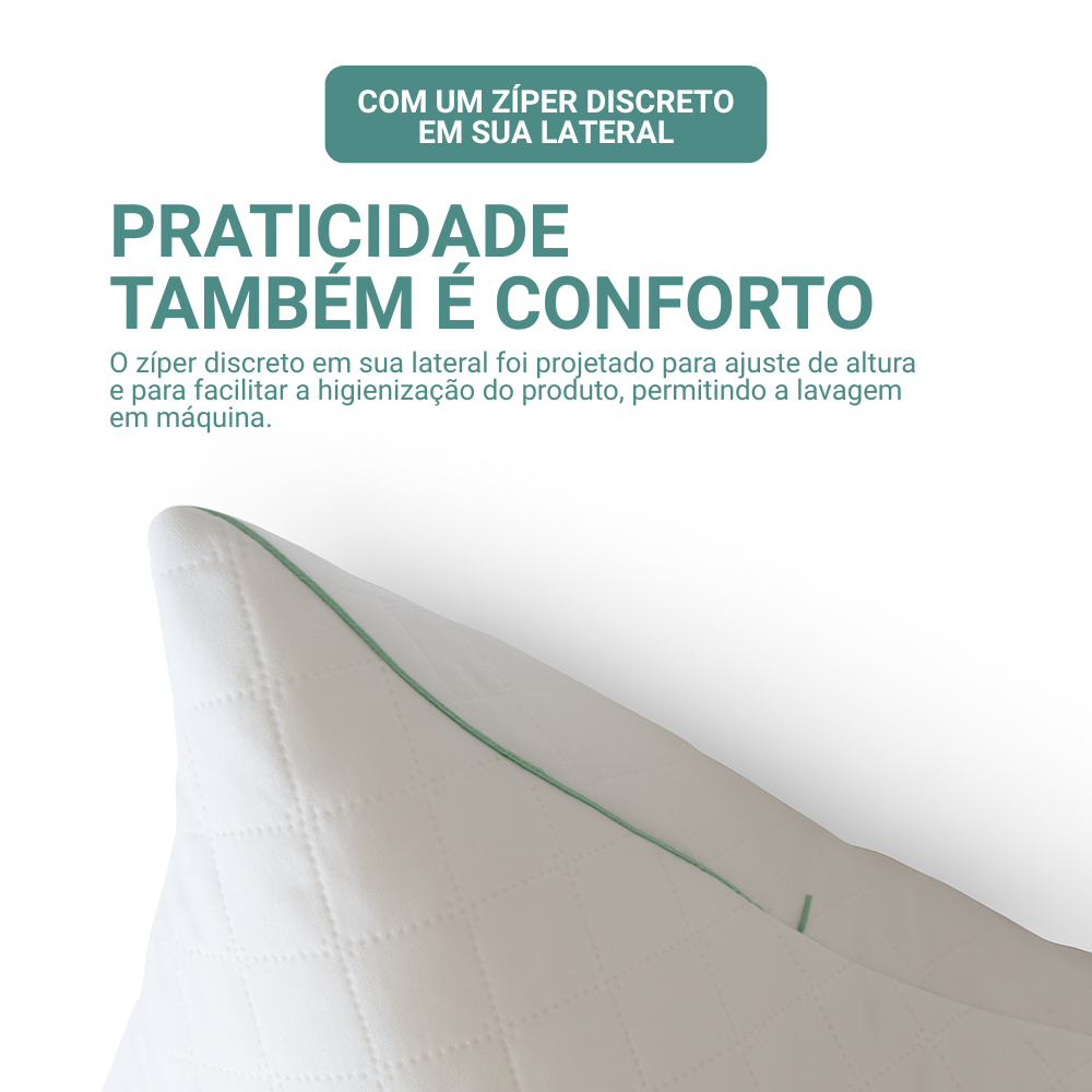 Possui zíper? | Sim. Os travesseiros possuem um zíper em sua lateral para ajuste de densidade e para facilitar a higienização.