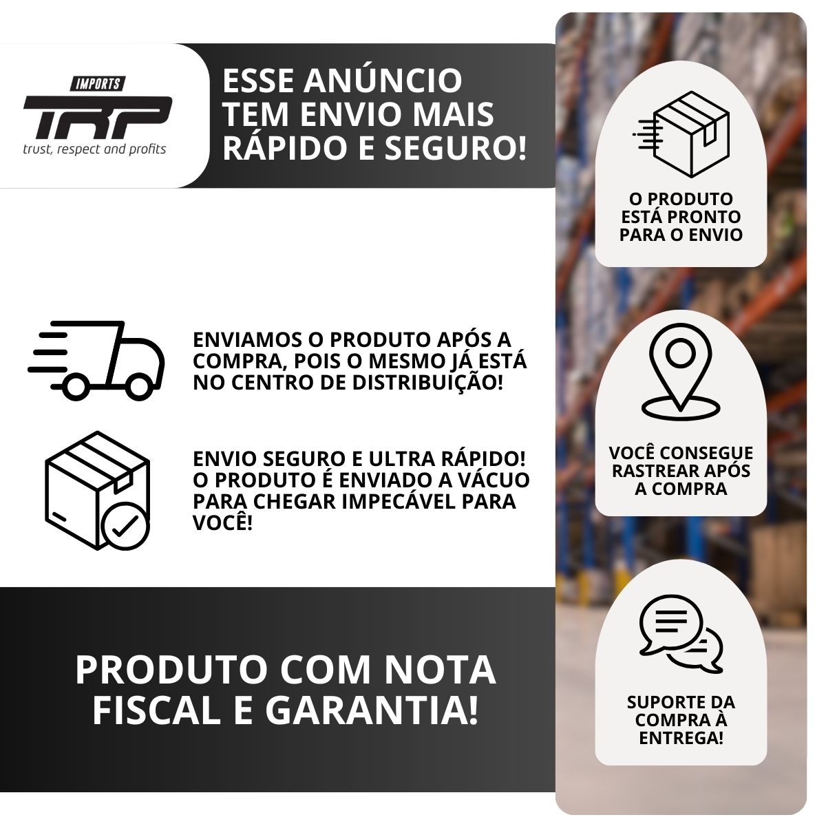 Diferenciais TRP Loja: Produto com garantia e disponível para Pagamento facilitado no Cartão e Envio Imediato.